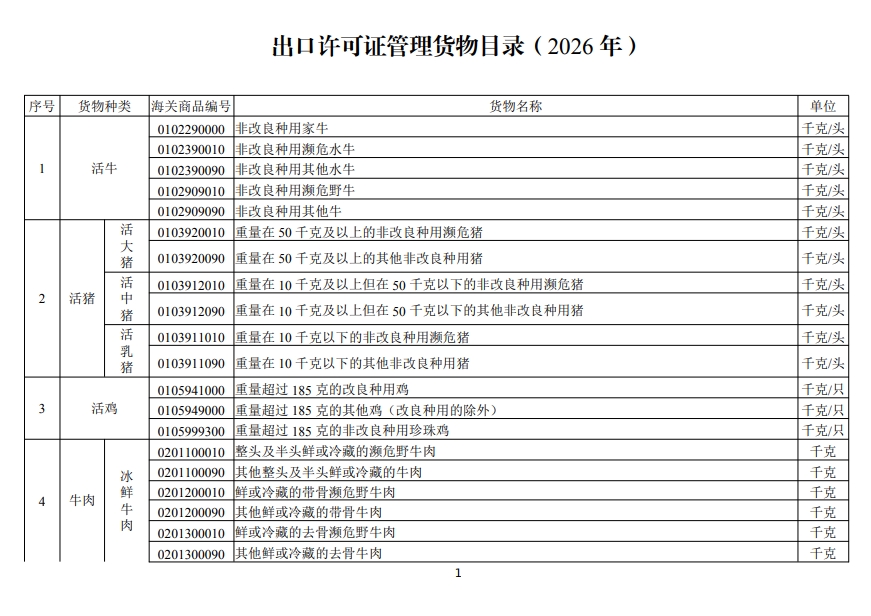 - 《出口许可证管理货物目录(2026年)》自2026年1月1日起执行。商务部、海关总署公告2024年第65号同时废止。